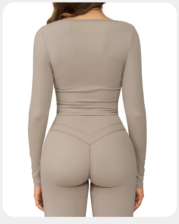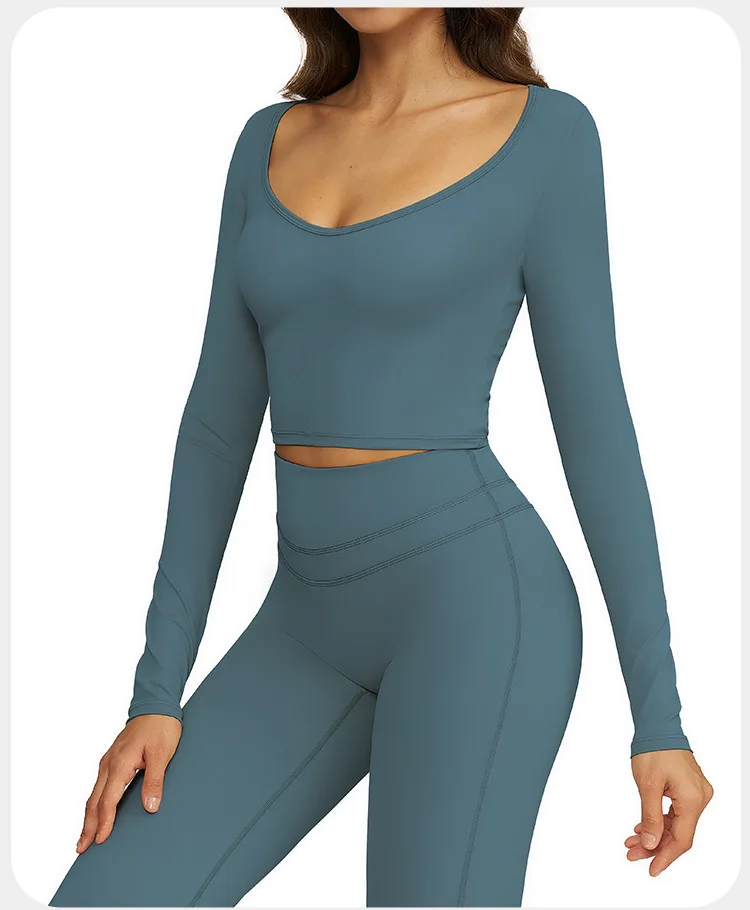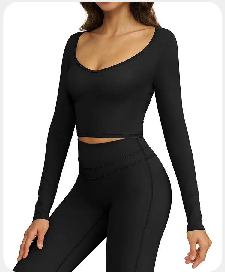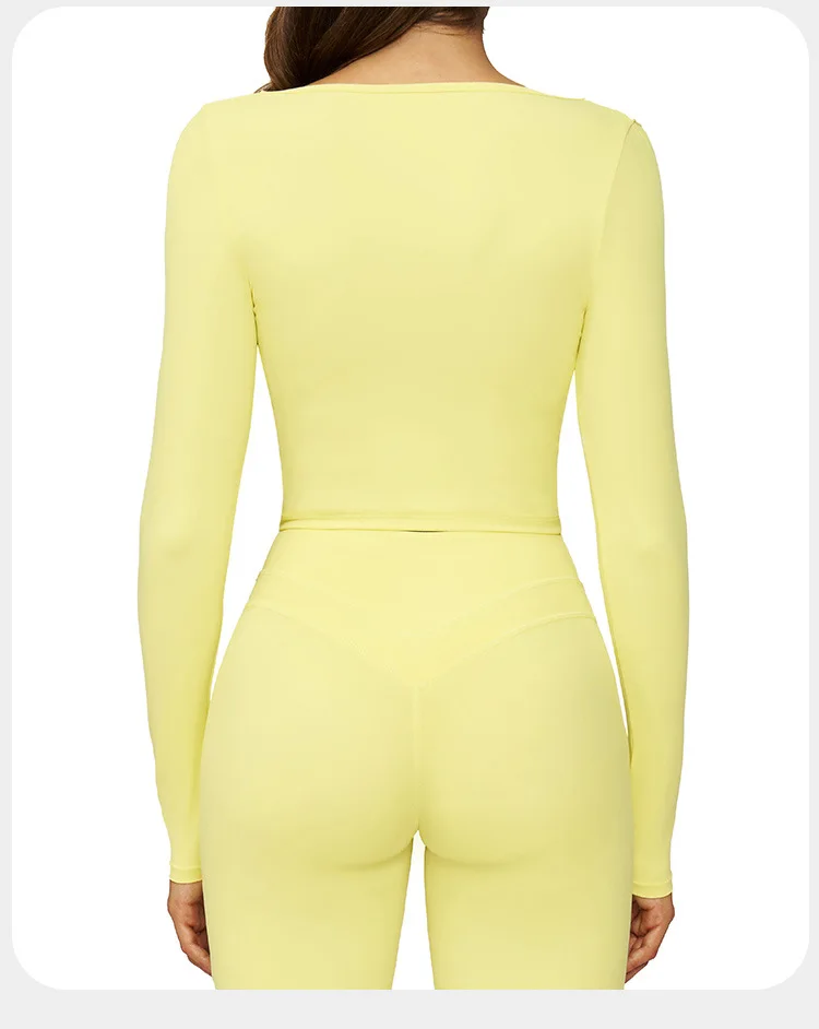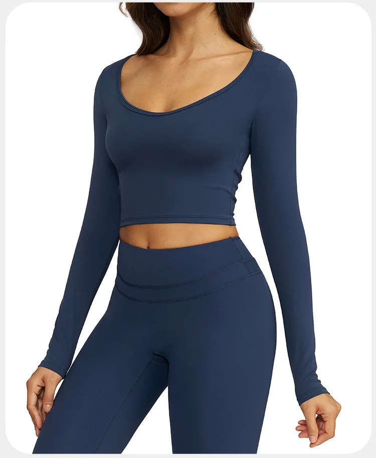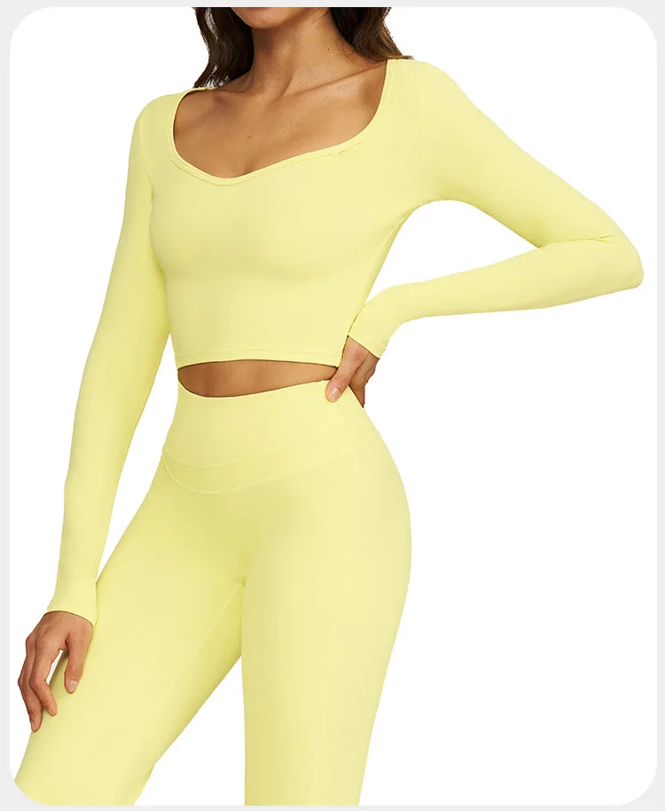 Women's Quick Drying Long Sleeve Yoga Shirt Breathable Sport Top for Outdoor Running Fitness Clothes Knitted Jinammonia Fabric